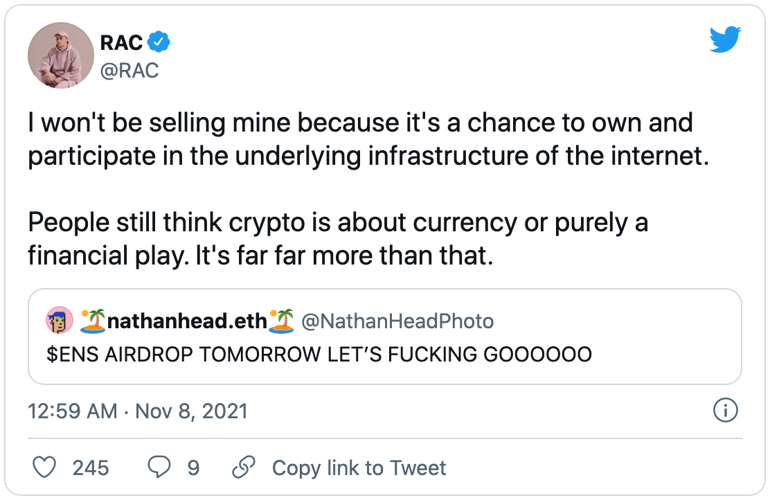 Crypto Is Cool. Now Get on the Yacht. Crypto in the NYT. Kevin Roose dives into NFT NYC, covering everything from BAYC to the FWB party and so much more. While skeptical at times (often rightfully so) of the true value of party-driven tokenomics, the piece is an interesting peek into the culture of web3, tokenized communities, and NFTs. VIBES FLEX