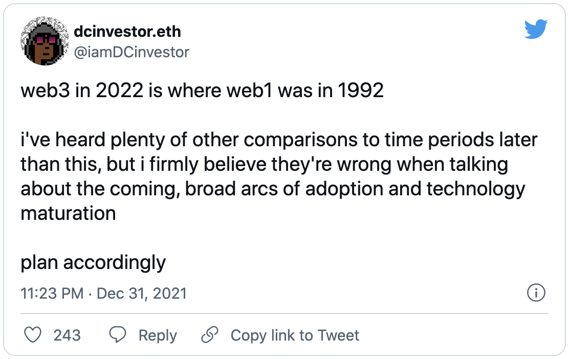 Web3/Crypto: Why Bother? These two essays – by Fred Wilson and Albert Wenger (both of Union Square Ventures), respectfully – attempt to tackle a simple question: “why web3?”. For anyone working in or exploring the space, such a question might have seemingly obvious answers, so much so that it is difficult to explain to someone completely new to the ecosystem. On the other hand, having a firm answer is necessary to continue to do great work. Both Fred and Albert tackle this question in similar yet distinct ways. We encourage our community to share their own answers. WHAT'S YOUR TAKE? 🧭