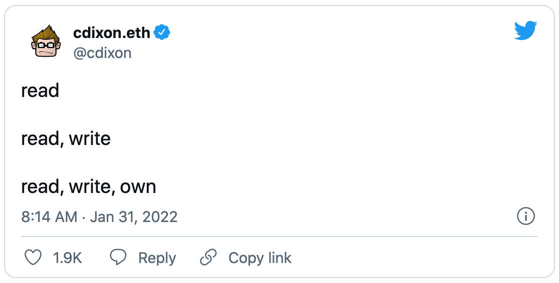 Soulbound by Vitalik Buterin. Drawing inspiration from World of Warcraft, Vitalik asks what if NFTs and governance reputation could be "soulbound." That is, what if some of the things we collect in our wallets on a day-to-day basis couldn’t be transferred and were permanently tied to our identities? This solves (and creates) major problems in reputation tracking and DAO governance, but privacy becomes an issue in this world, as Vitalik explains. Yet another thoughtful post from the man himself. PERMANENT VALUE CREATION 🔮