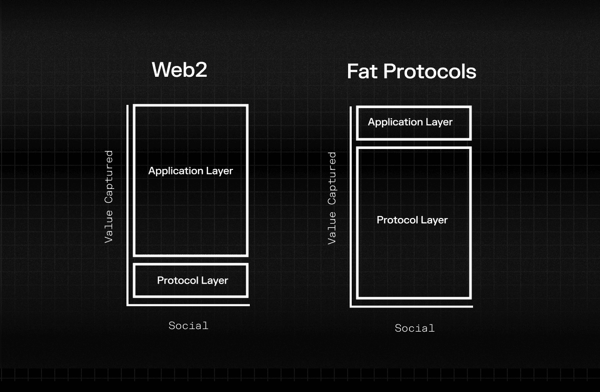 Union Square Ventures' Fat Protocols Thesis states that decentralized protocols will capture most of the value in web3 products, compared to the application layer: